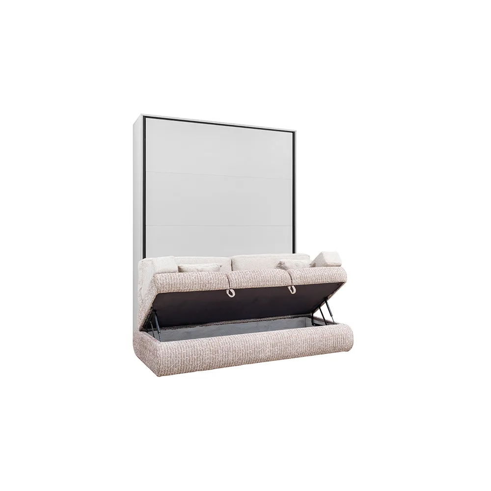 Gündüz koltuk ve depolama, gece ise tam donanımlı bir duvardan açılan yatak olarak kullanılan bu sistem, dar alanlarda maksimum verimlilik sunar.